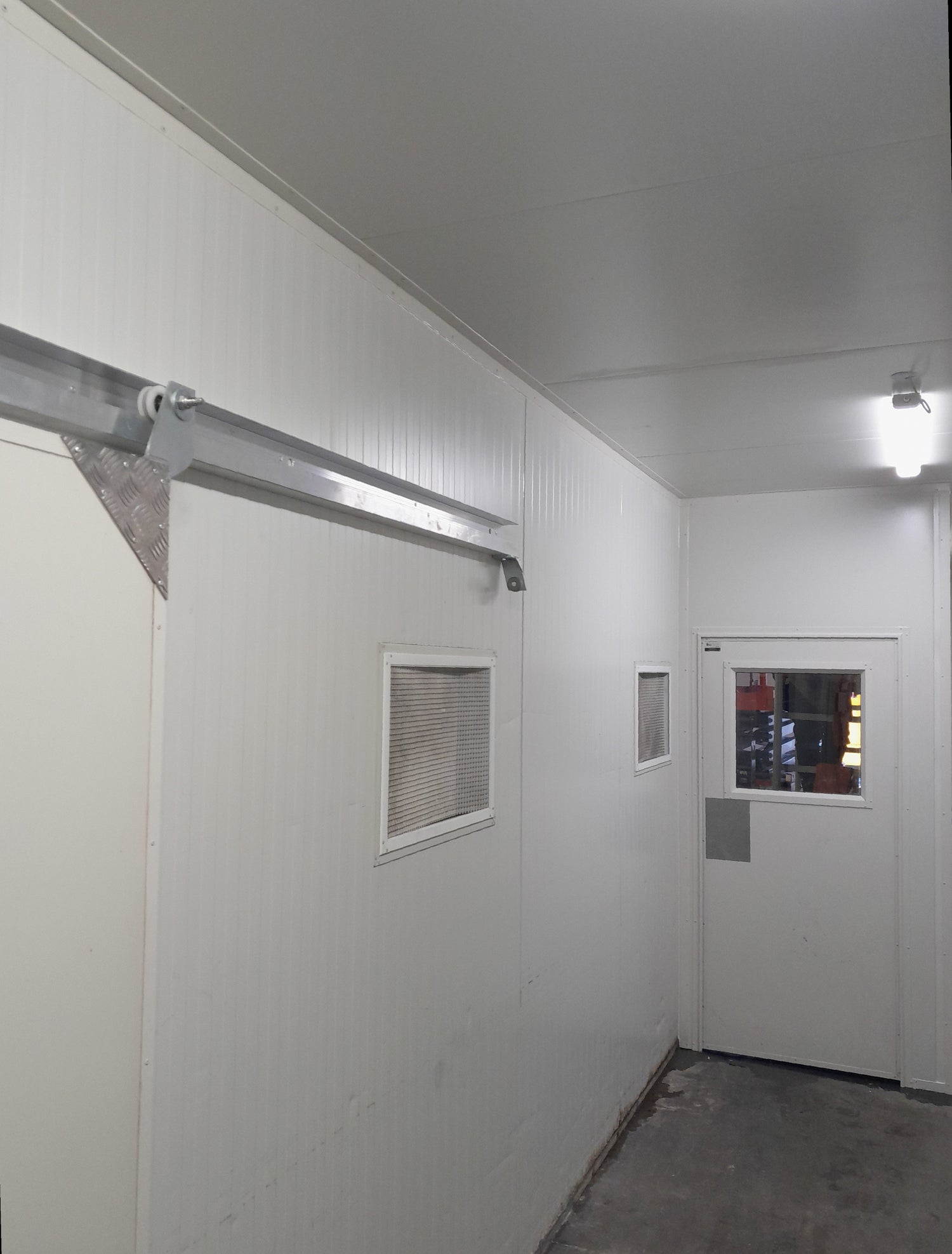 Our insulated sliding doors can be made in 50 mm or 100 mm thick and are designed for use in -40 to +45 degrees. Insulated door panels are made from expanded polystyrene (EPS) or polyurethane core (PIR) and clad with galvanised steel which can be painted to your chosen colour. The robust design and sturdy materials along with smart design means the doors are durable and breakdowns are practically non-existent.